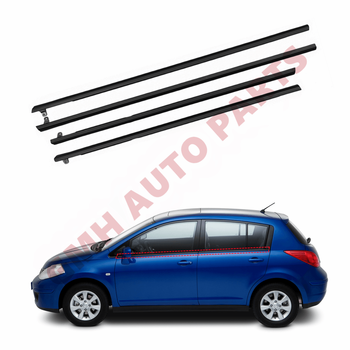 4ชิ้นสายเข็มขัดประตูแผ่นยางกันน้ำสำหรับ Nissan Tiida C11 2004-2010แผงประตูกระจกประดับด้วยลูกปัดครบชุด