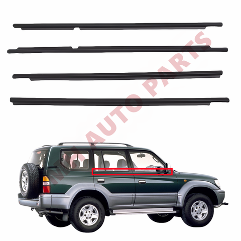ยางซีลหน้าต่างด้านซ้ายและขวาสำหรับรถยนต์นอกขอบยางแผ่นยางกันฝนสำหรับ Toyota Land Cruiser Prado 1996-2002